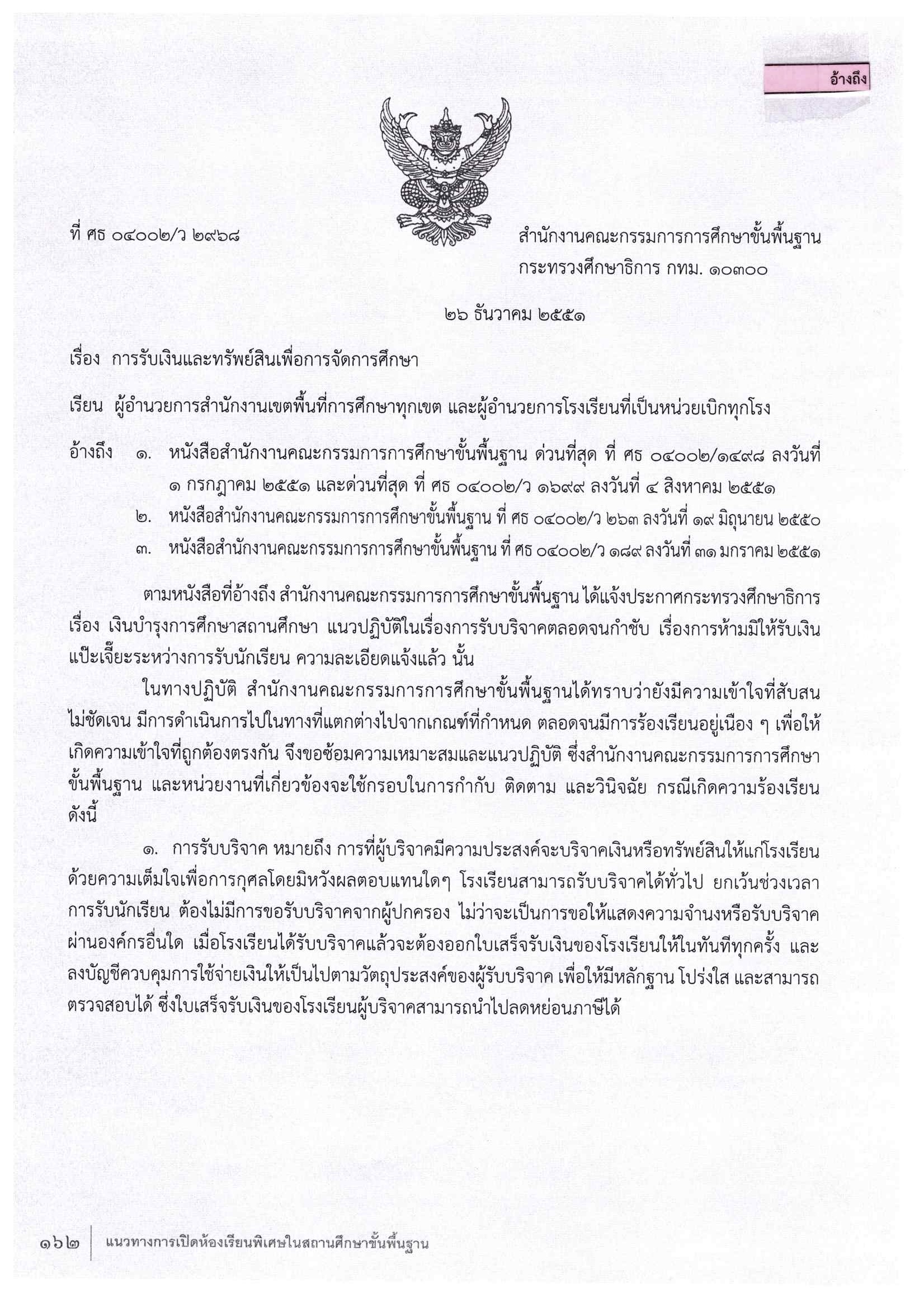 อ้างถึง หนังสือสำนักงานคณะกรรมการการศึกษาขั้นพื้นฐาน ที่ ศธ 04002/ว 2968 ลงวันที่ 26 ธันวาคม 2551