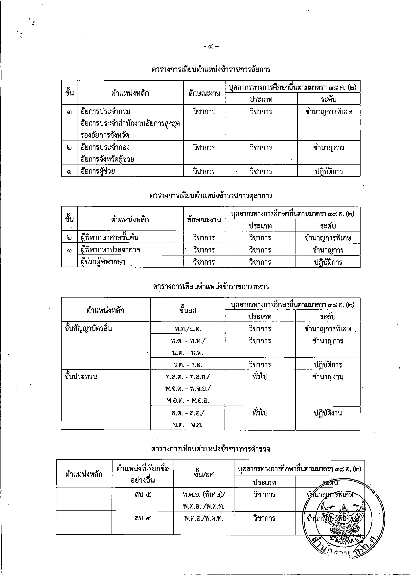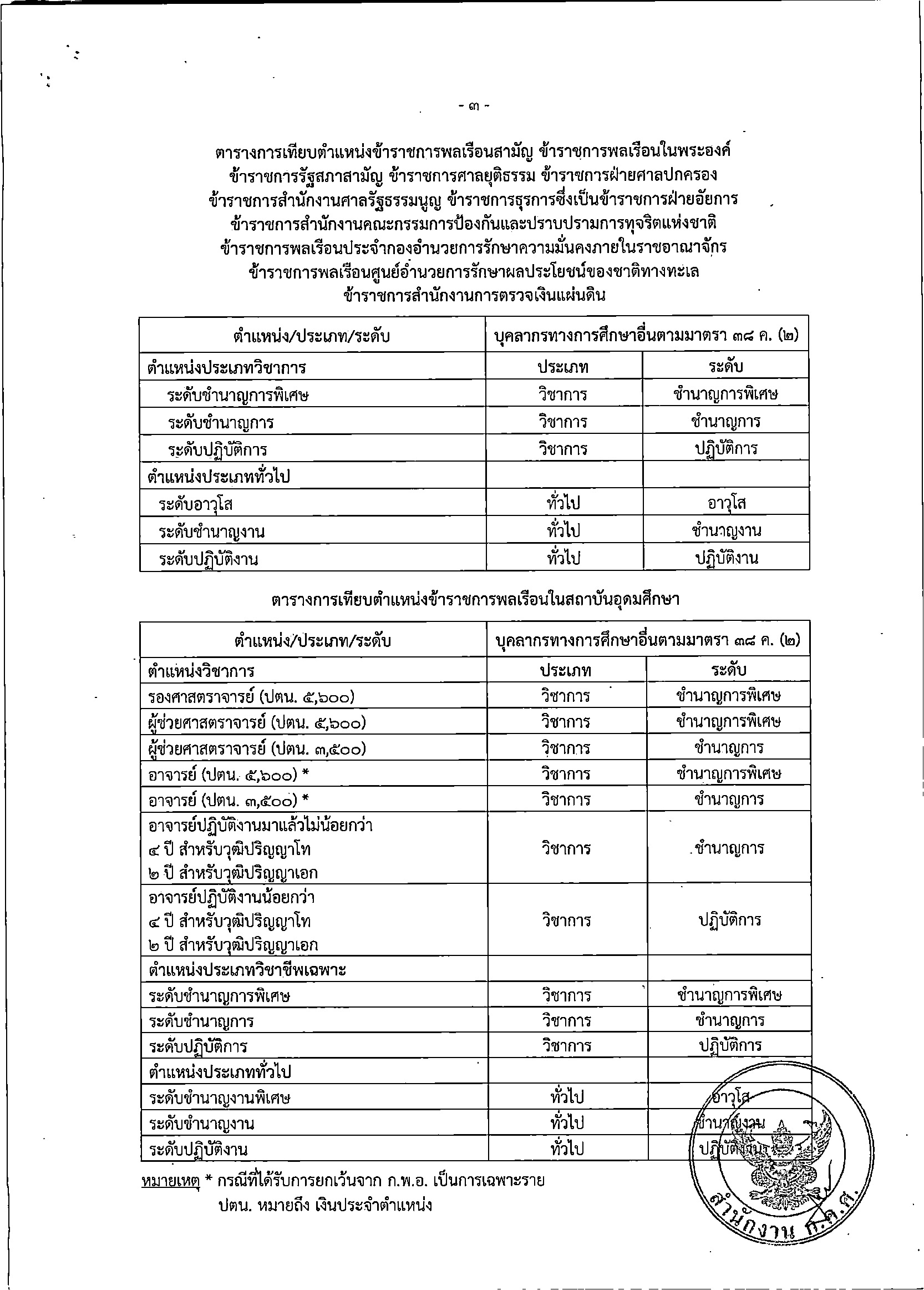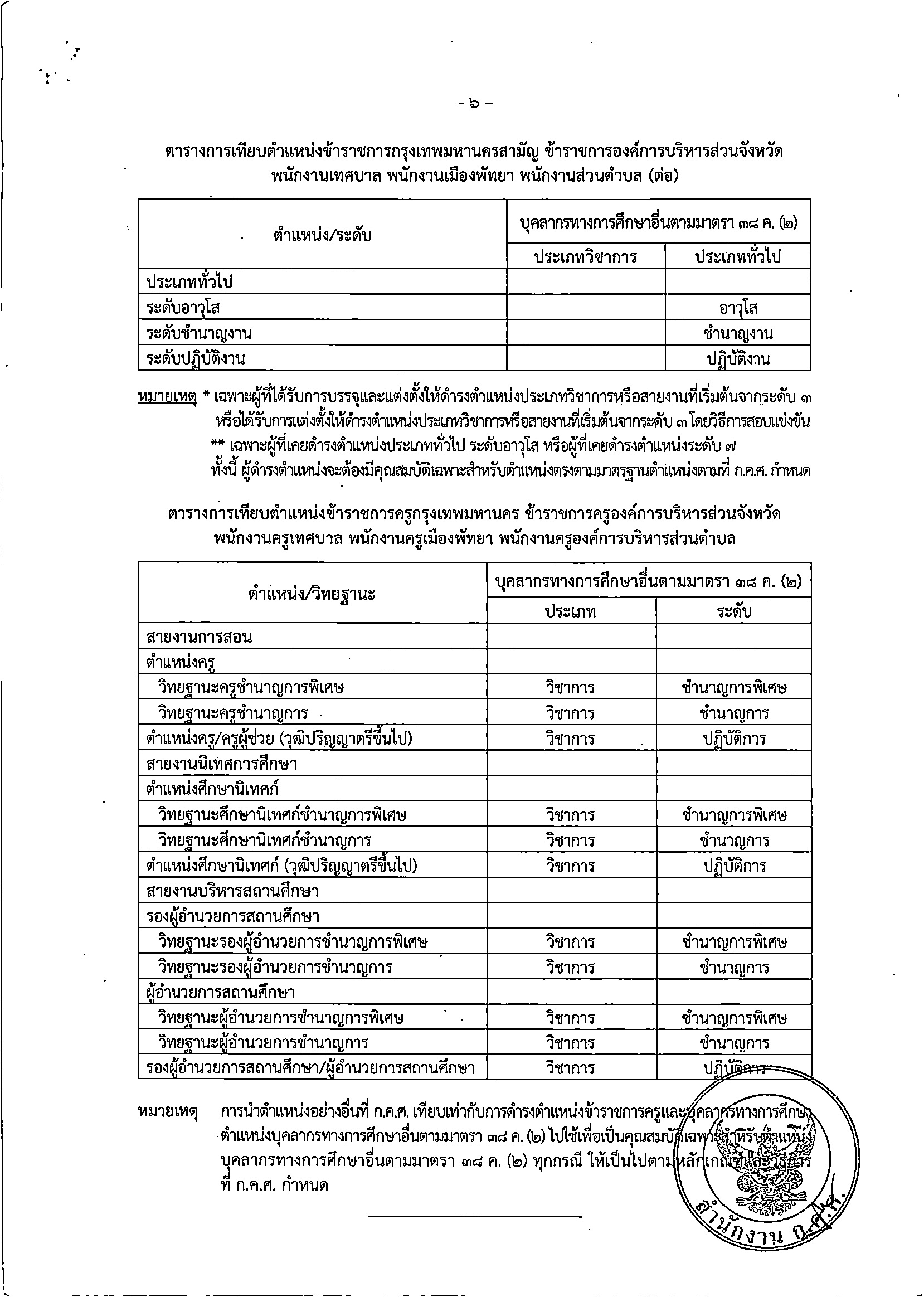 หลักเกณฑ์และเงื่อนไขการเทียบตำแหน่งอย่างอื่นเท่ากับการดำรงตำแหน่งข้าราชการครูและบุคลากรทางการศึกษา ตำแหน่งบุคลากรทางการศึกษาอื่นตามมาตรา 38 ค.(2)
