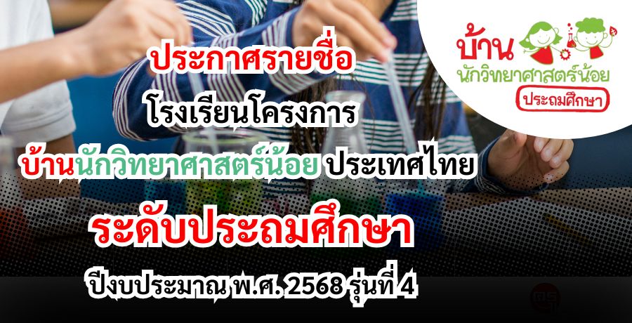 ในการนี้ สำนักงานคณะกรรมการการศึกษาขั้นพื้นฐานจึงได้ประกาศรายชื่อโรงเรียน ที่ได้รับคัดเลือกเข้าร่วมโครงการบ้านนักวิทยาศาสตร์น้อยประเทศไทย ระดับประถมศึกษ าปีงบประมาณ พ.ศ.2568 รุ่นที่ 4 จำนวน 5,325 โรงเรียน ทั้งนี้ ให้สำนักงานเขตพื้นที่การศึกษาประถมศึกษา แจ้งโรงเรียนในสังกัดทราบ เพื่อเข้าร่วมการจัดการเรียนรู้ตามแนวทางของโครงการบ้านนักวิทยาศาสตร์น้อย ประเทศไทย ระดับประถมศึกษา รายละเอียดตามสิ่งที่ส่งมาด้วย