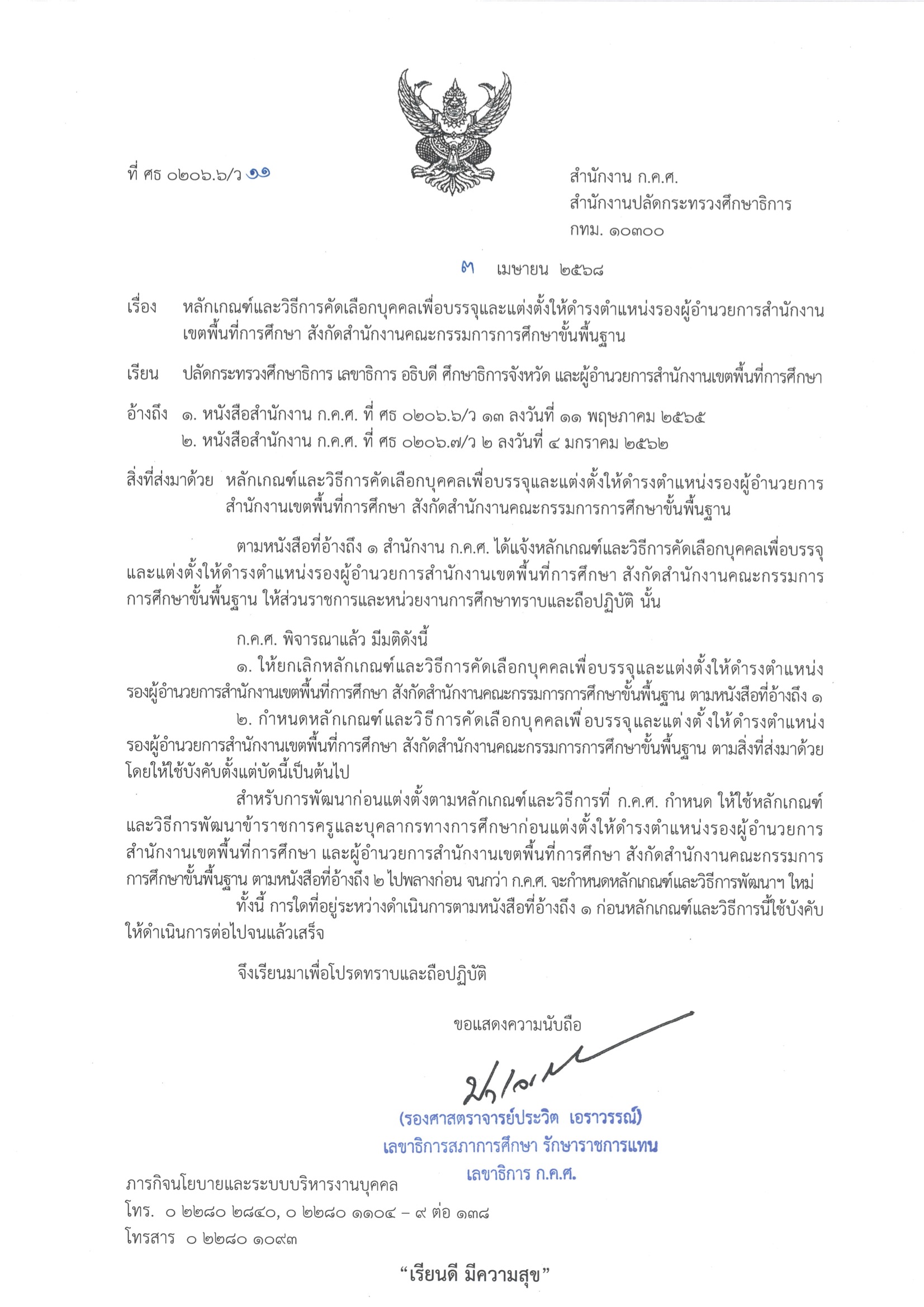 ว 11/2568 หลักเกณฑ์และวิธีการคัดเลือกบุคคลเพื่อบรรจุและแต่งตั้งให้ดำรงตำแหน่งรองผู้อำนวยการสำนักงานเขตพื้นที่การศึกษา สังกัดสำนักงานคณะกรรมการการศึกษาขั้นพื้นฐาน