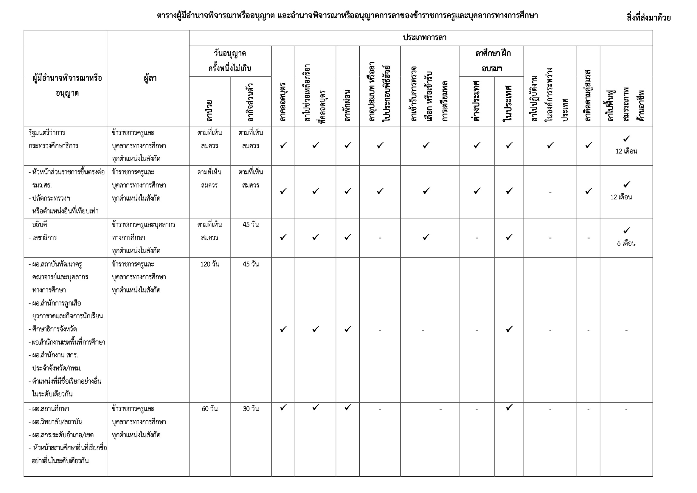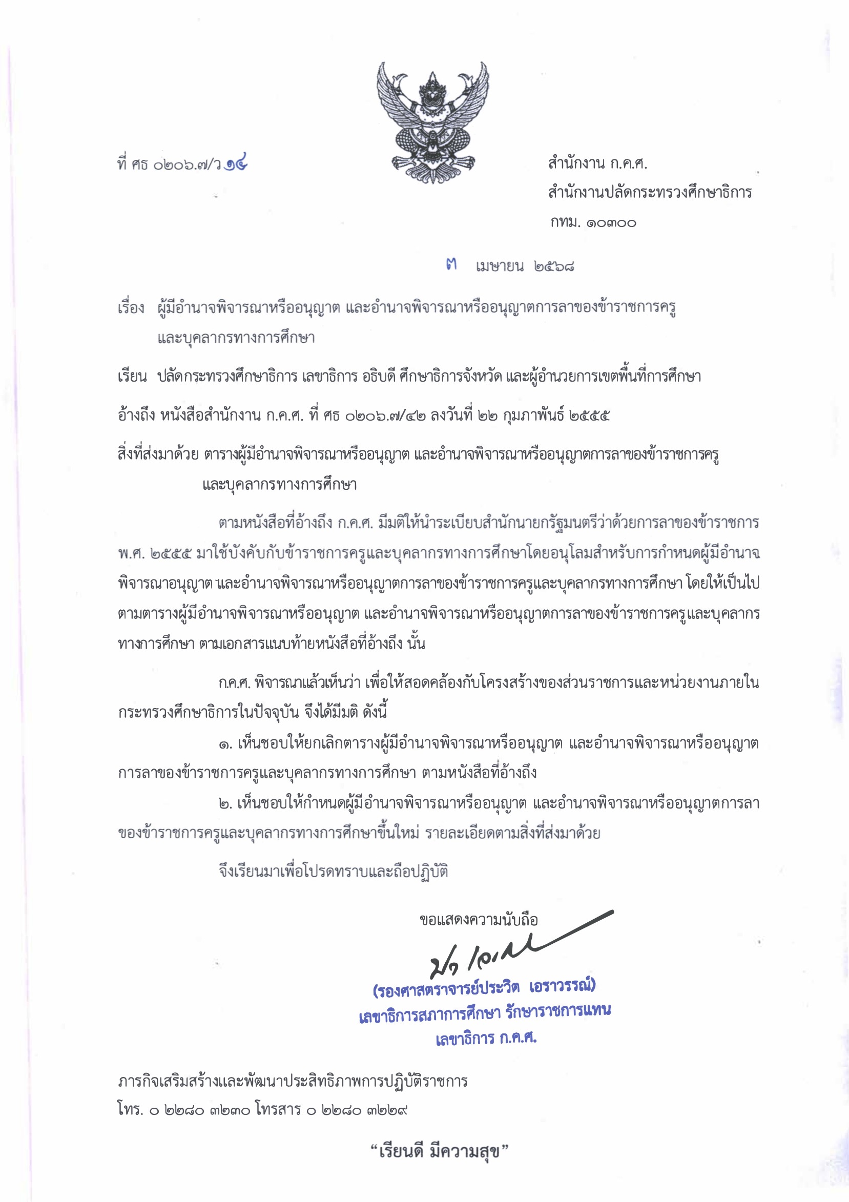 ว 14/2568 ผู้มีอำนาจพิจารณาหรืออนุญาต และอำนาจพิจารณาหรืออนุญาตการลา ของข้าราชการครูและบุคลากรทางการศึกษา
