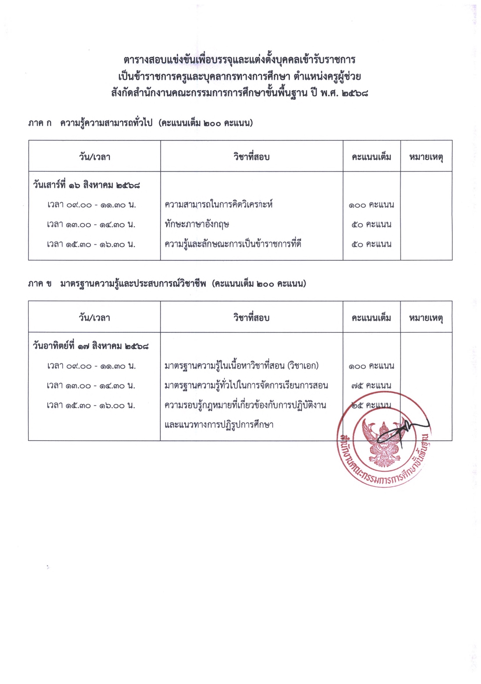 การสอบแข่งขัน ฯ ตำแหน่งครูผู้ช่วย สังกัด สพฐ. ปี 2568 - (แจ้งกำหนดรายละเอียดการสอบแข่งขันฯ)