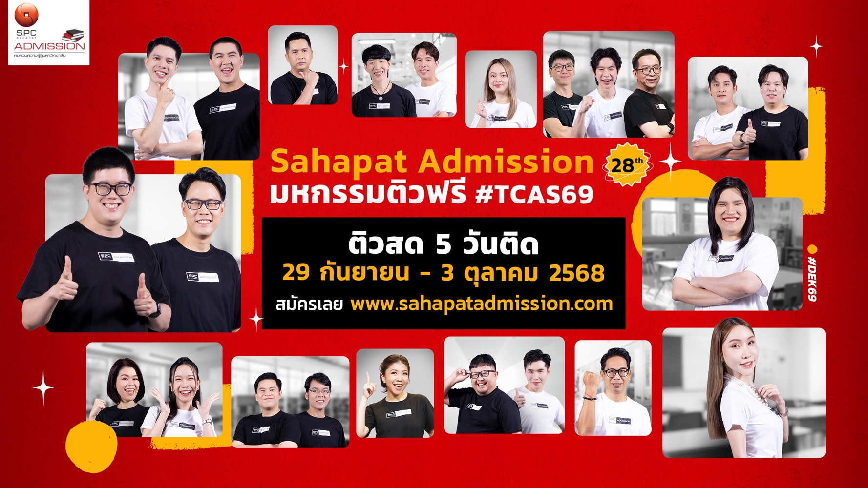 มาร่วมเติมเต็มเป้าหมายและความมุ่งมั่น เพื่อก้าวสู่มหาวิทยาลัยในฝันไปพร้อมกัน Sahapat Admission ครั้งที่ 28 ภายใต้แนวคิด #DEK69 “วัยรุ่น TEST ดี ตั้งใจดี เตรียมตัวดี คะแนน TEST ดีแน่นอน”