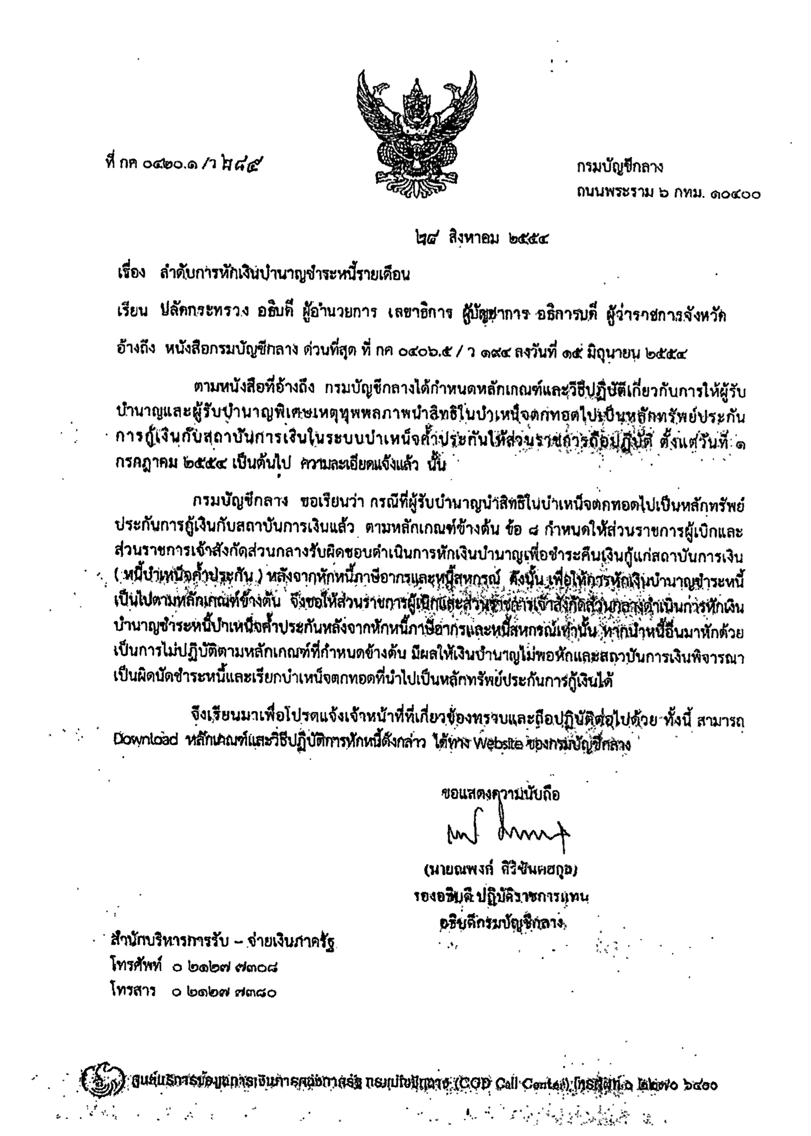 จึงเรียนมาเพื่อพิจารณาแจ้งเจ้าหน้าที่ที่เกี่ยวข้องทราบและถือปฏิบัติต่อไป ทั้งนี้ สามารถ Download หลักเกณฑ์และวิธีปฏิบัติการหักหนี้ดังกล่าว ได้ทาง Website ของกรมบัญชีกลาง