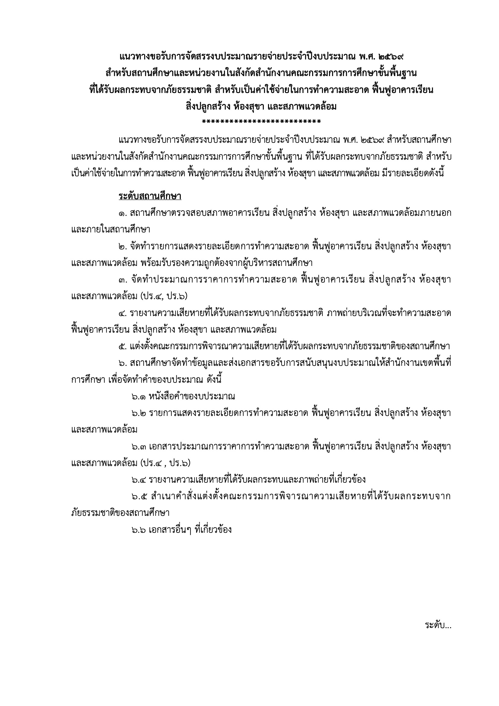 ที่ ศธ 04006/ว47578 เรื่อง แนวทางขอรับการจัดสรรงบประมาณรายจ่ายประจำปีงบประมาณ พ.ศ. 2569 สำหรับสถานศึกษาและหน่วยงานในสังกัดที่ได้รับผลกระทบจากภัยธรรมชาติ