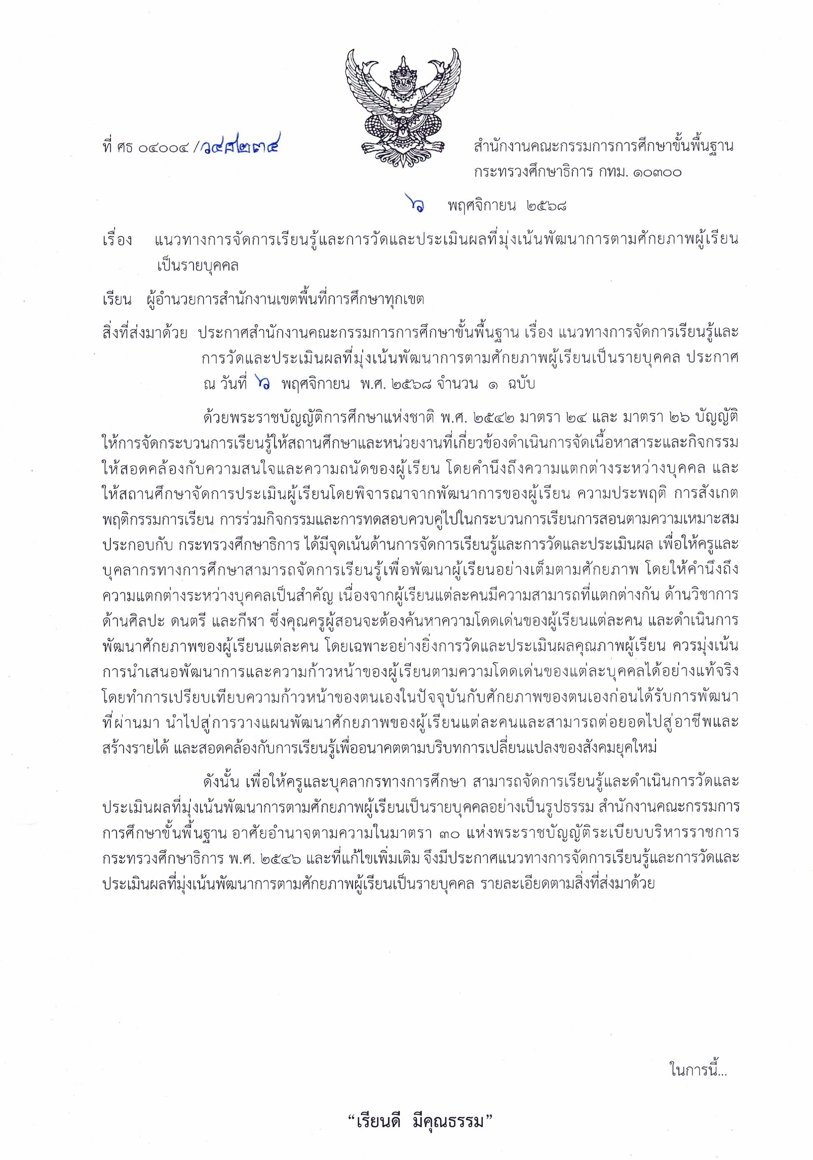 แนวทางการจัดการเรียนรู้และการวัดและประเมินผลที่มุ่งเน้นพัฒนาการตามศักยภาพผู้เรียนเป็นรายบุคคล