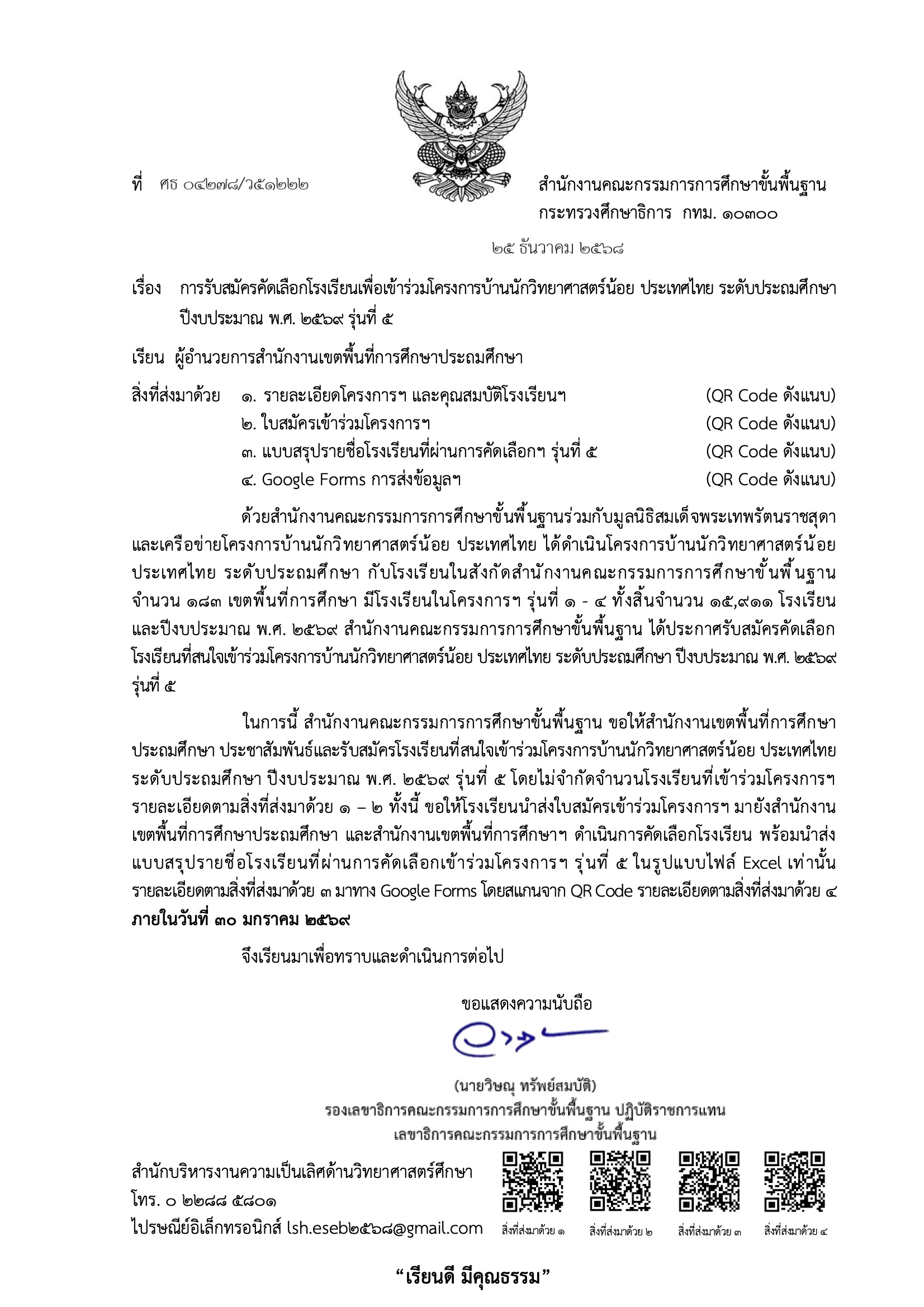 รับสมัครคัดเลือกโรงเรียนเพื่อเข้าร่วมโครงการบ้านนักวิทยาศาสตร์น้อย ประเทศไทย ระดับประถมศึกษา ปีงบประมาณ พ.ศ. 2569 รุ่นที่ 5รับสมัครคัดเลือกโรงเรียนเพื่อเข้าร่วมโครงการบ้านนักวิทยาศาสตร์น้อยประเทศไทยระดับประถมศึกษาปีงบประมาณพ.ศ.2569รุ่นที่5