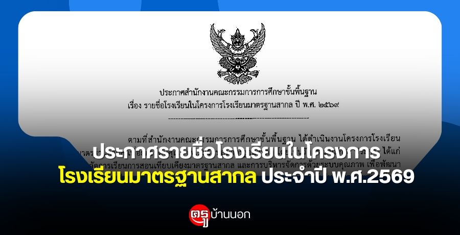 ประกาศรายชื่อโรงเรียนในโครงการโรงเรียนมาตรฐานสากล ประจำปี พ.ศ.2569