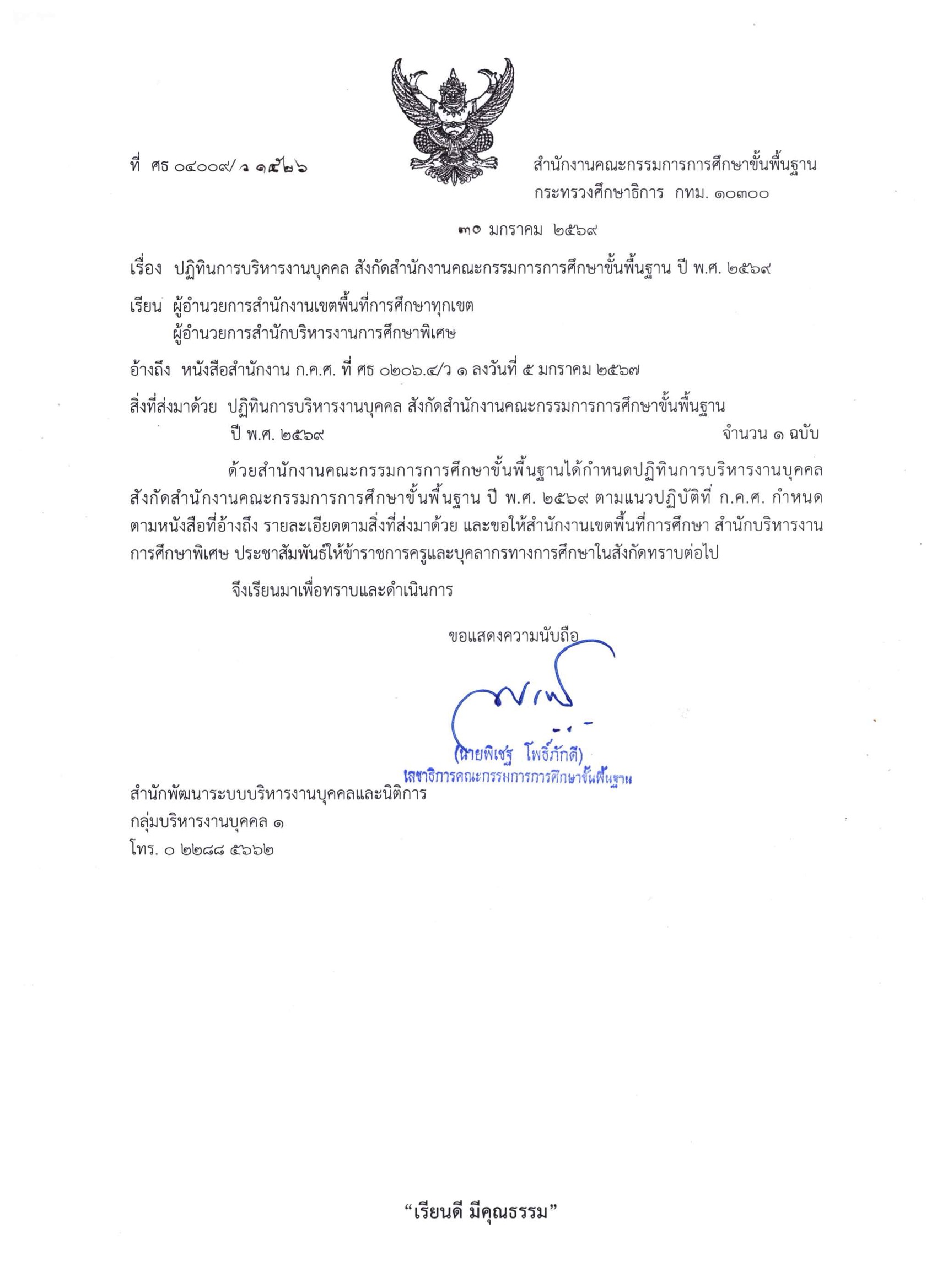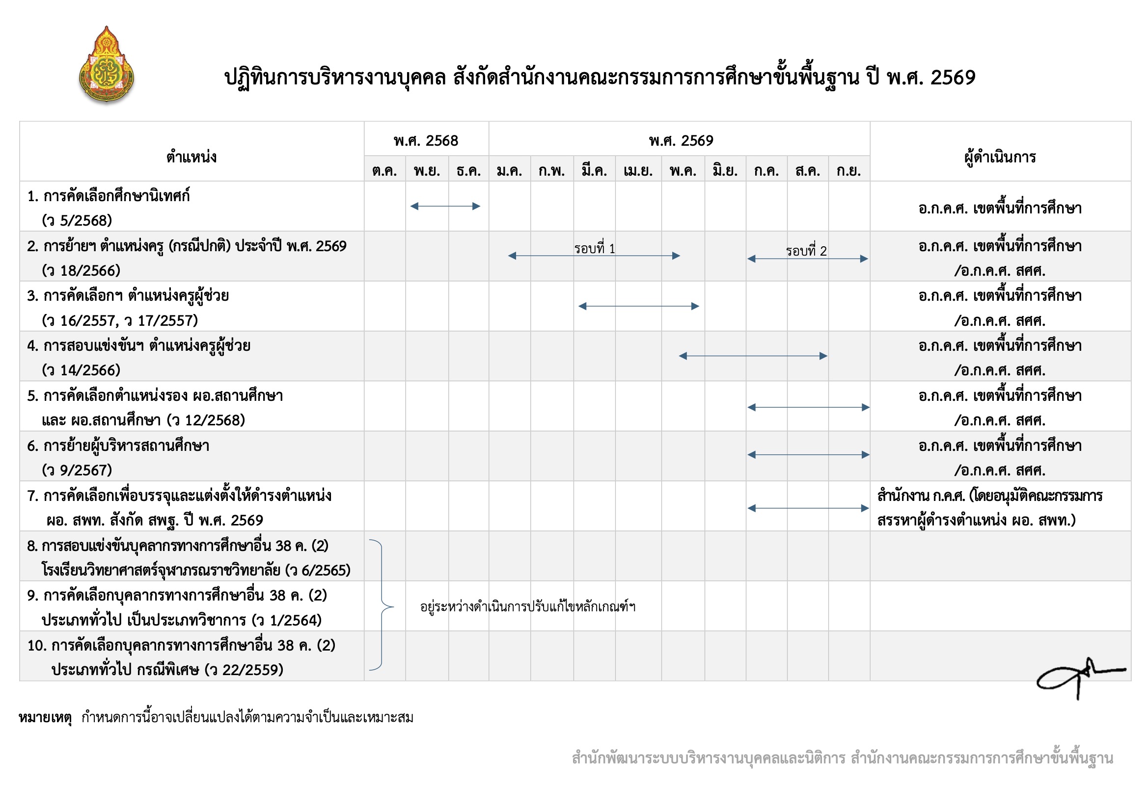 ปฏิทินการบริหารงานบุคคล สังกัดสำนักงานคณะกรรมการการศึกษาขั้นพื้นฐาน ปี พ.ศ. 2569ปฏิทินการบริหารงานบุคคลสังกัดสำนักงานคณะกรรมการการศึกษาขั้นพื้นฐานปีพ.ศ.2569