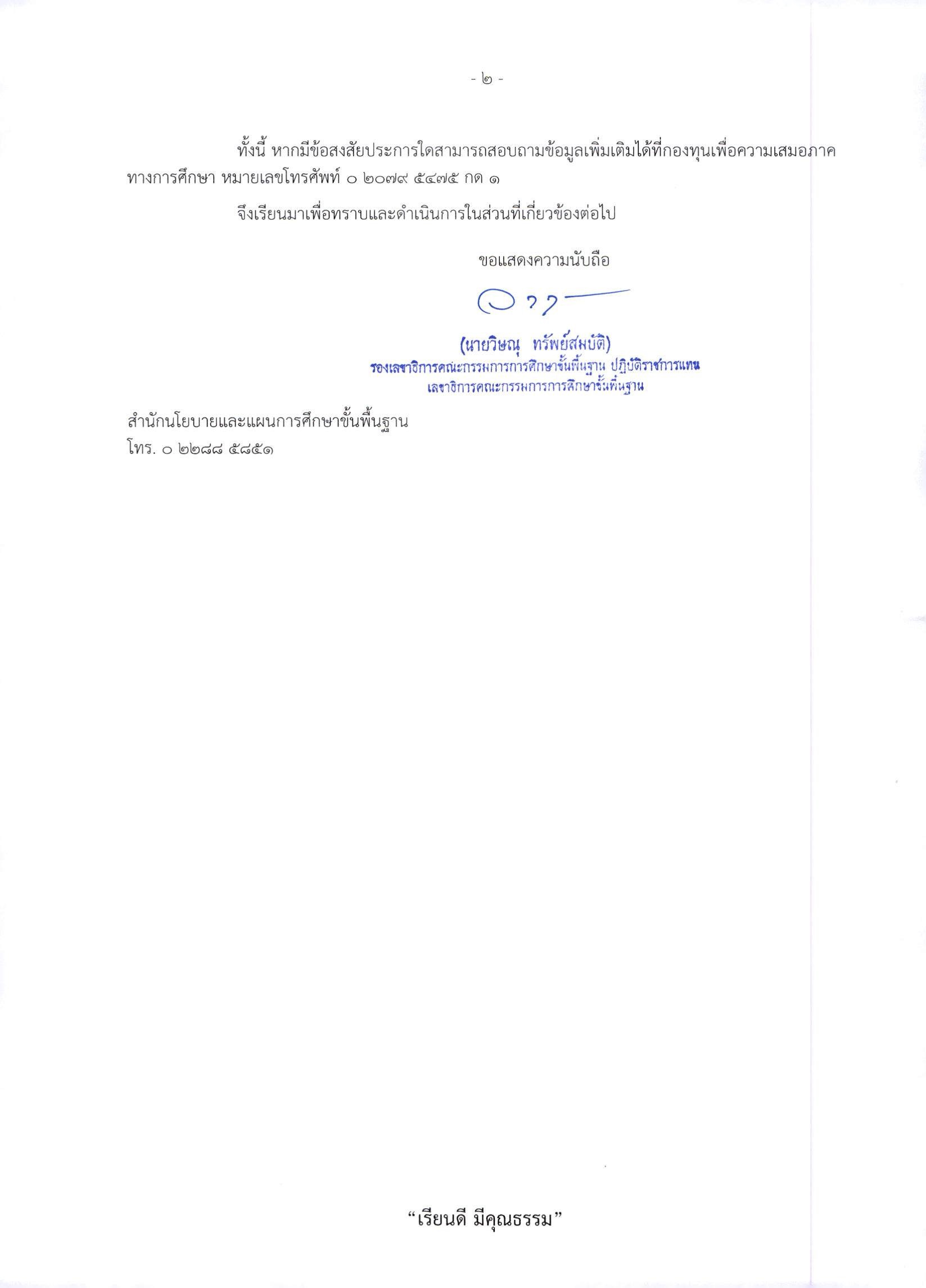 การกำกับดูแล: ขอให้สำนักงานเขตพื้นที่การศึกษา (สพป./สพม.) กำกับและติดตามให้สถานศึกษาในสังกัดดำเนินการให้เป็นไปตามแนวทางที่กำหนด