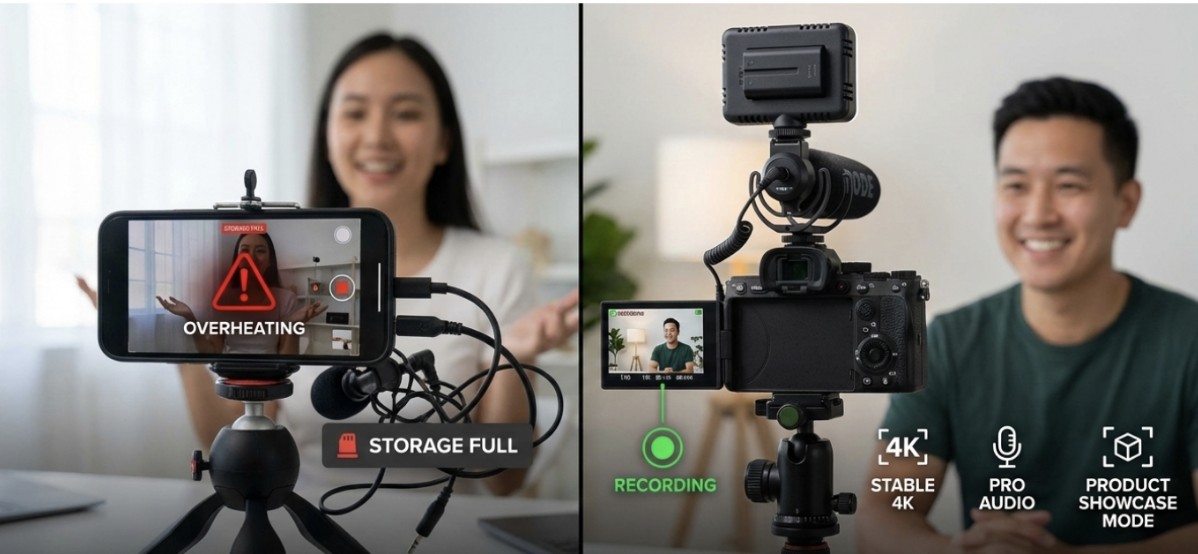 มือถือเมื่อถ่ายวิดีโอความละเอียดสูงนานๆ มักเจอปัญหาเครื่องร้อน ตัดการทำงาน หรือเมมโมรี่เต็มเร็ว แต่ กล้องถ่าย Vlog ถูกออกแบบมาเพื่อรับงานหนักโดยเฉพาะ มีระบบระบายความร้อนที่ดีกว่า มีระบบกันสั่น (IBIS) ที่นิ่งเนียนแบบไม่ต้องพึ่งแอปฯ และที่สำคัญคือคุณภาพเสียงและการต่อพ่วงอุปกรณ์เสริม เช่น ไมโครโฟนแยก หรือไฟ LED ที่ทำได้ยืดหยุ่นกว่า