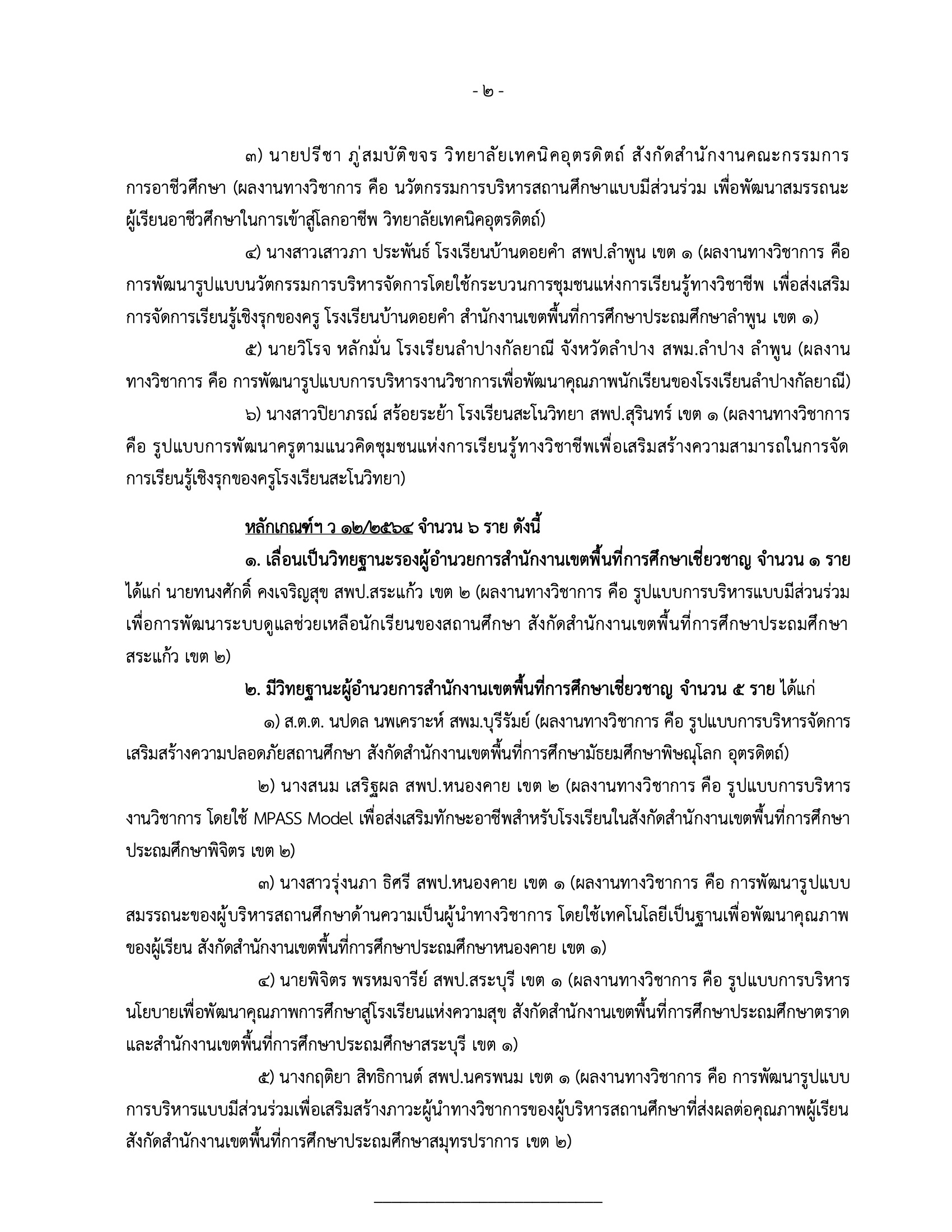- วิทยฐานะผู้อำนวยการเชี่ยวชาญ จำนวน 6 ราย