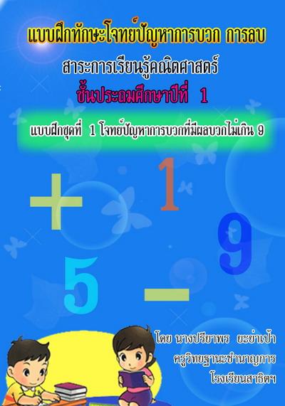 1) เพื่อสร้างและหาประสิทธิภาพแบบฝึกทักษะโจทย์ปัญหาการบวก การลบ สำหรับนักเรียนชั้นประถมศึกษาปีที่ 1 2) เพื่อเปรียบเทียบผลสัมฤทธิ์ทางการเรียนวิชาคณิตศาสตร์ ก่อนและหลังการใช้แบบฝึกทักษะโจทย์ปัญหาการบวก การลบ ของนักเรียนชั้นประถมศึกษาปีที่ 1 3) เพื่อเปรียบเทียบความสนใจในการเรียนวิชาคณิตศาสตร์ ก่อนและหลังการใช้แบบฝึกทักษะโจทย์ปัญหาการบวก การลบ ของนักเรียนชั้นประถมศึกษาปีที่ 1 กลุ่มตัวอย่างคือ นักเรียนชั้นประถมศึกษาปีที่ 1/2 โรงเรียนสาธิต (ภายใต้ความร่วมมือระหว่างสำนักงานเขตพื้นที่การศึกษากำแพงเพชร เขต 1 กับมหาวิทยาลัยราชภัฏกำแพงเพชร) สังกัดสำนักงานเขตพื้นที่การศึกษากำแพงเพชร ปีการศึกษา 2550 จำนวน 33 คน ใช้เวลาในการศึกษา 30 ชั่วโมง เครื่องมือที่ใช้ในการเก็บรวบรวมข้อมูล เป็นแบบฝึกทักษะโจทย์ปัญหาการบวก การลบ ชั้นประถมศึกษาปีที่ 1 แบบทดสอบวัดผลสัมฤทธิ์ทางการเรียน เรื่องโจทย์ปัญหาการบวก การลบ และแบบความสนใจในการเรียนวิชาคณิตศาสตร์ ชั้นประถมศึกษาปีที่ 1