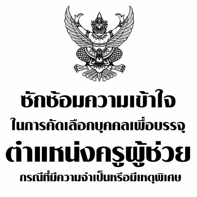 ด่วนที่สุด! การคัดเลือกบุคคลเพื่อบรรจุแต่งตั้ง ตำแหน่งครูผู้ช่วย กรณีที่มีความจำเป็นหรือมีเหตุพิเศษ ครั้งที่ 2/2558