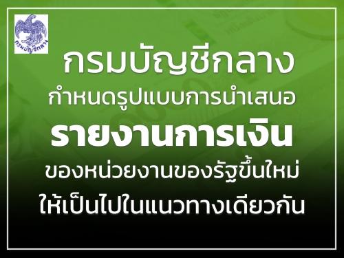 กรมบัญชีกลางกำหนดรูปแบบการนำเสนอรายงานการเงิน ของหน่วยงานของรัฐขึ้นใหม่ ให้เป็นไปในแนวทางเดียวกัน