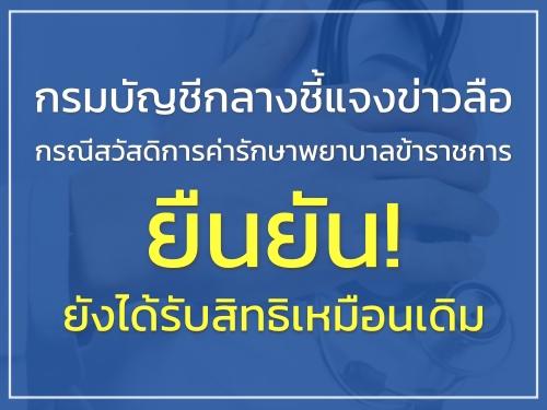 กรมบัญชีกลางชี้แจงข่าวลือกรณีสวัสดิการค่ารักษาพยาบาลข้าราชการ ยืนยัน! ยังได้รับสิทธิเหมือนเดิม