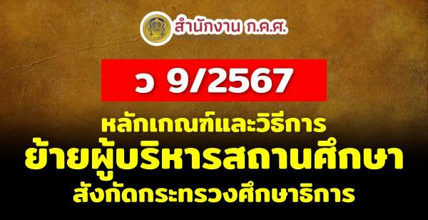 ว 9/2567 หลักเกณฑ์และวิธีการย้ายผู้บริหารสถานศึกษา สังกัดกระทรวงศึกษาธิการ