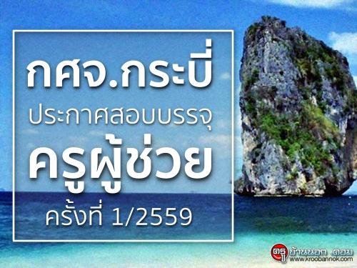 กศจ.กระบี่ รับสมัครสอบแข่งขันเพื่อบรรจุบุคคลเข้ารับราชการข้าราชการครูและบุคลากรทางการศึกษา ตำแหน่งครูผู้ช่วย ครั้งท่ี 1 ปี พ.ศ.2559