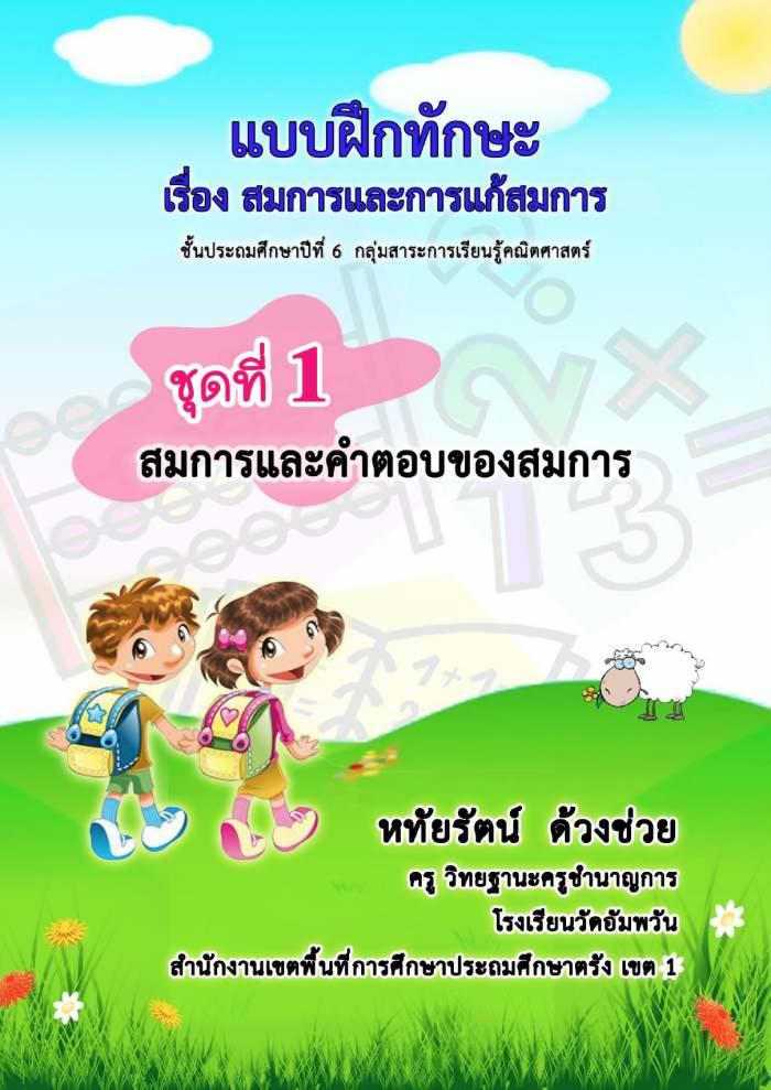 แบบฝึกทักษะกลุ่มสาระการเรียนรู้คณิตศาสตร์ เรื่อง สมการและการแก้สมการ ผลงานครูหทัยรัตน์ ด้วงช่วย
