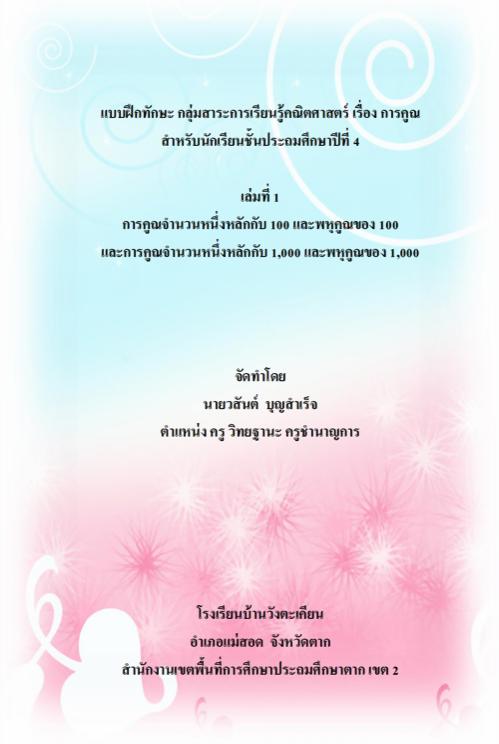 แบบฝึกทักษะ กลุ่มสาระการเรียนรู้คณิตศาสตร์ เรื่อง การคูณ ผลงานครูวสันต์ บุญสำเร็จ