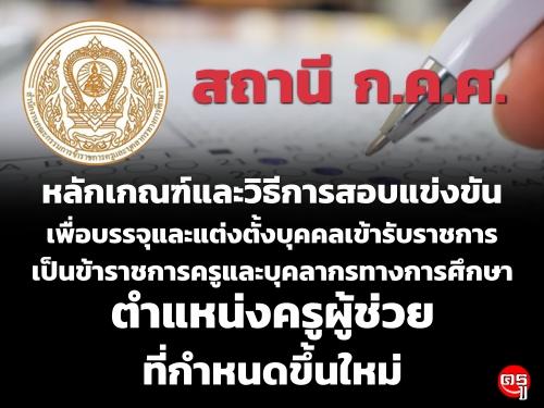 หลักเกณฑ์และวิธีการสอบแข่งขันเพื่อบรรจุและแต่งตั้งบุคคลเข้ารับราชการเป็นข้าราชการครูและบุคลากรทางการศึกษา ตำแหน่งครูผู้ช่วย ที่กำหนดขึ้นใหม่