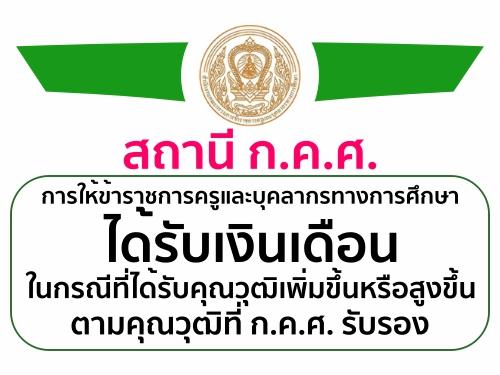 สถานี ก.ค.ศ. การให้ข้าราชการครูและบุคลากรทางการศึกษาได้รับเงินเดือนในกรณีที่ได้รับคุณวุฒิเพิ่มขึ้นหรือสูงขึ้น ตามคุณวุฒิที่ ก.ค.ศ. รับรอง