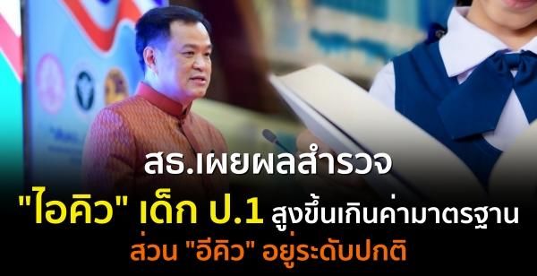 สธ.เผยผลสำรวจ "ไอคิว" เด็ก ป.1 สูงขึ้นเกินค่ามาตรฐาน ส่วน "อีคิว" อยู่ระดับปกติ เร่งพัฒนากลุ่มขาดโอกาส