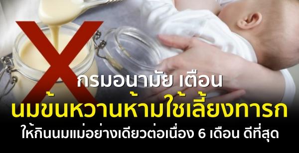 กรมอนามัย เตือน นมข้นหวานห้ามใช้เลี้ยงทารก ให้กินนมแม่อย่างเดียวต่อเนื่อง 6 เดือน ดีที่สุด