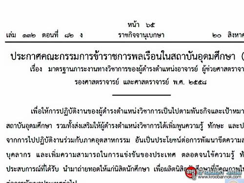 ก.พ.อ. ออกประกาศมาตรฐานภาระงานทางวิชาการ