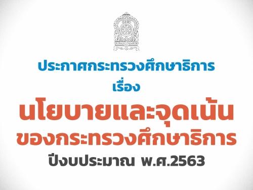 ประกาศกระทรวงศึกษาธิการ เรื่อง นโยบายและจุดเน้นของกระทรวงศึกษาธิการ ปีงบประมาณ พ.ศ.2563