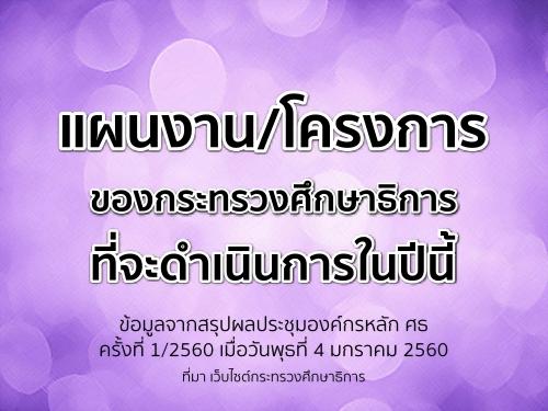 แผนงาน/โครงการของกระทรวงศึกษาธิการที่จะดำเนินการในปี 2560