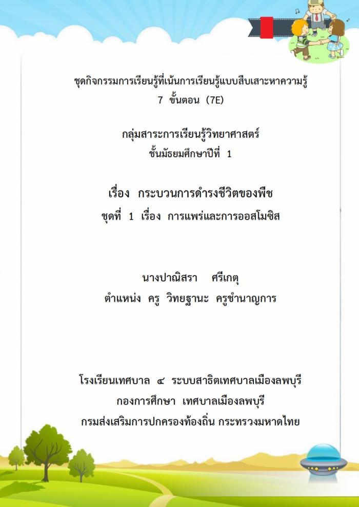 ชุดกิจกรรมการเรียนรู้ที่เน้นการเรียนรู้แบบสืบเสาะหาความรู้ 7 ขั้นตอน (7E)เรื่อง กระบวนการดารงชีวิตของพืช ผลงานครูปาณิสรา ศรีเกตุ