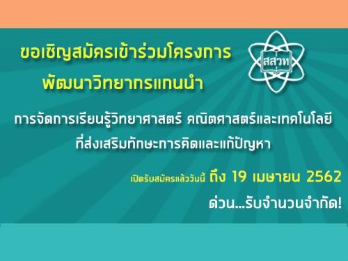 สสวท.เปิดรับสมัครอบรม "ครูแกนนำด้านการจัดการเรียนรู้วิทยาศาสตร์ คณิตศาสตร์ และเทคโนโลยีที่ส่งเสริมทักษะการคิดและแก้ปัญหา"