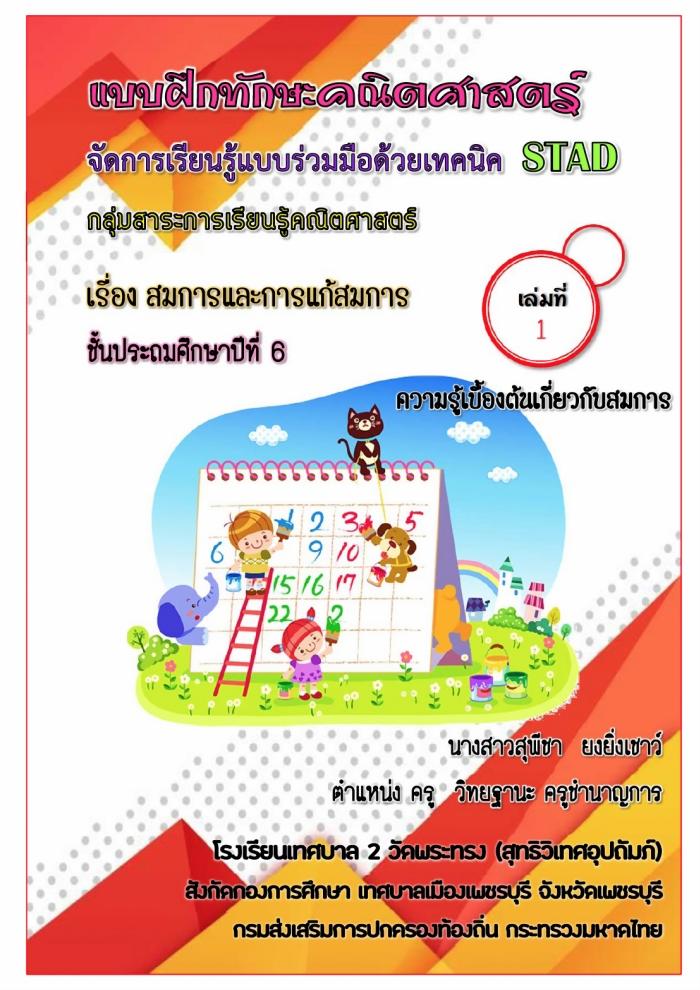 แบบฝึกทักษะคณิตศาสตร์ เรื่อง สมการและการแก้สมการ ผลงานครูสุพีชา ยงยิ่งเชาว์