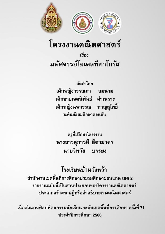 โครงงานคณิตศาสตร์ เรื่อง มหัศจรรย์โมเดลพีทาโกรัส ประเภทสร้างทฤษฎีหรือคำอธิบายทางคณิตศาสตร์ ชั้น ม.ต้น : สุภาวดี บรรยง