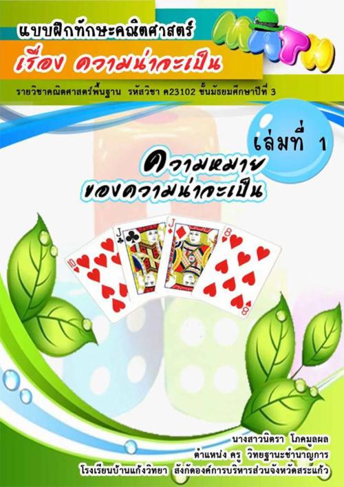แบบฝึกทักษะคณิตศาสตร์ เรื่อง ความน่าจะเป็น สาหรับนักเรียนชั้นมัธยมศึกษาปีที่ 3 ผลงานครูเสาวณีย์ อยู่แคล้ว