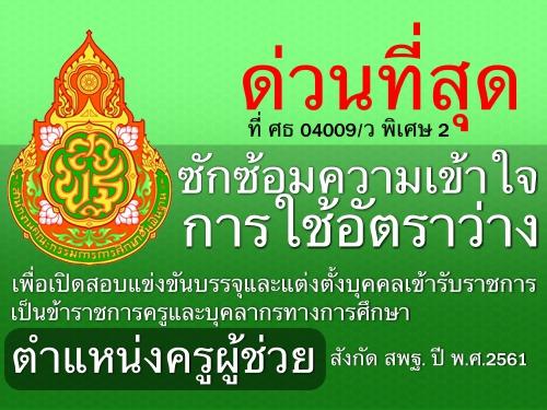 ซักซ้อมความเข้าใจการใช้อัตราว่างเพื่อเปิดสอบแข่งขันบรรจุและแต่งตั้งบุคคลเข้ารับราชการเป็นข้าราชการครูและบุคลากรทางการศึกษา ตำแหน่งครูผู้ช่วย สพฐ.