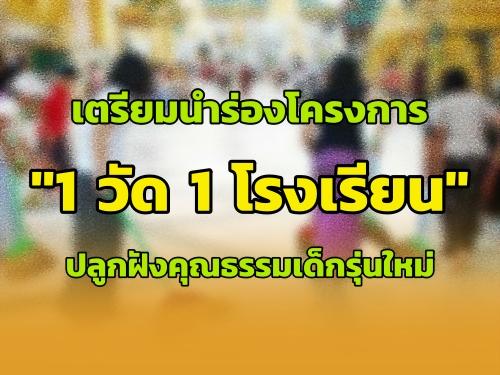 เตรียมนำร่องโครงการ "1 วัด 1 โรงเรียน" ปลูกฝังคุณธรรมเด็กรุ่นใหม่