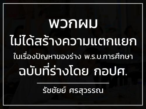 พวกผมไม่ได้สร้างความแตกแยก ในเรื่องปัญหาของร่าง พ.ร.บ.การศึกษา ฉบับที่ร่างโดย กอปศ. : รัชชัยย์ ศรสุวรรณ