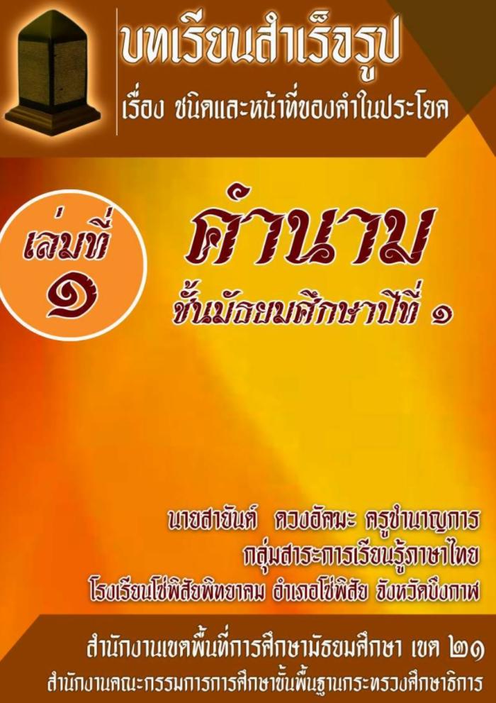 บทเรียนสำเร็จรูป เรื่องชนิดและหน้าที่ของคำในประโยค ระดับชั้นมัธยมศึกษาปี ที่ ๑ ผลงานครูสายันต์ ดวงอัคฆะ