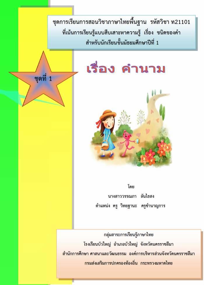 ชุดการเรียนการสอนวิชาภาษาไทย เรื่อง ชนิดของคำ ผลงานครูวรรณภา ลันไธสง