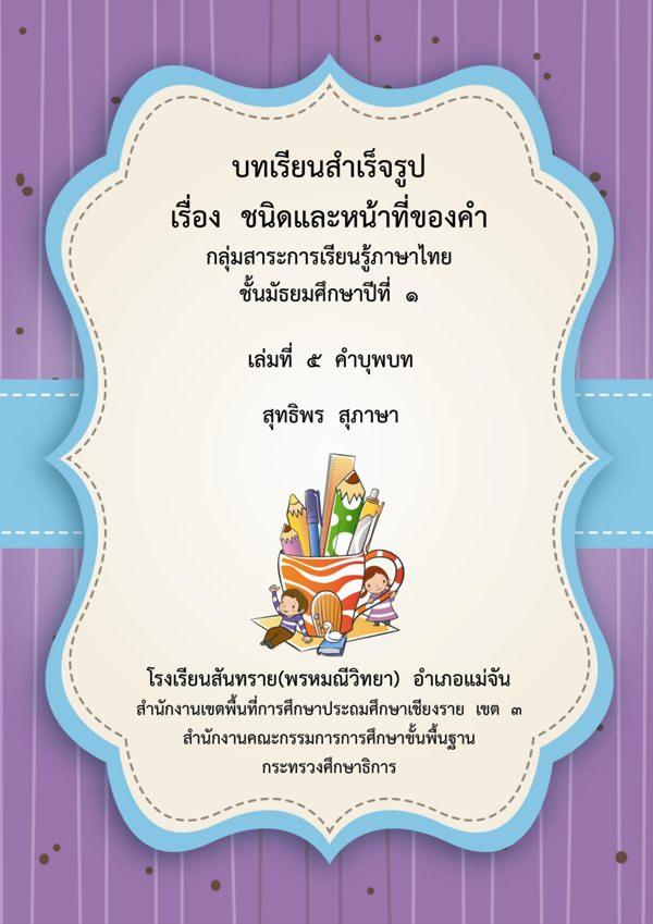 บทเรียนสำเร็จรูป เรื่อง ชนิดและหน้าที่ของคำ ภาษาไทย ม.1 ผลงานครูสุทธิพร สุภาษา