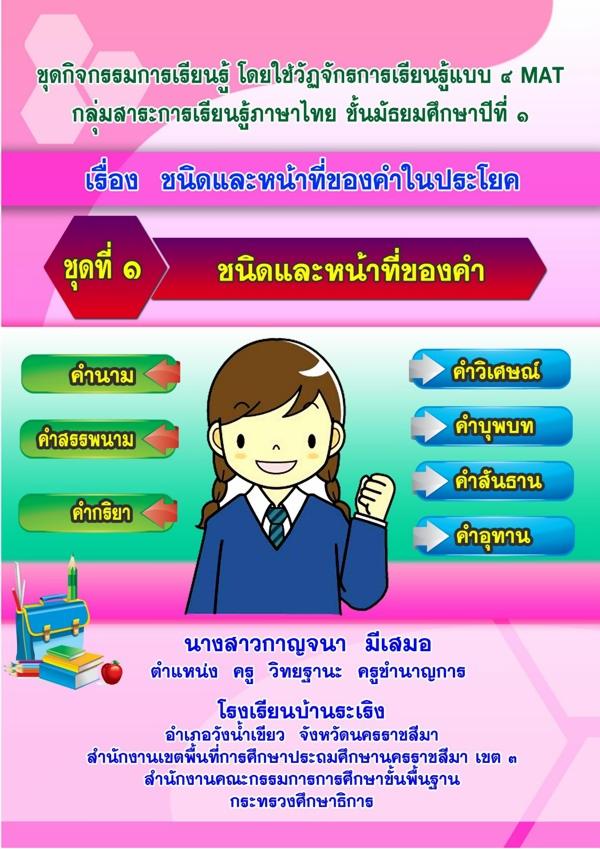 ชุดกิจกรรมการเรียนรู้แบบ 4MAT ภาษาไทย ม.1 เรื่อง ชนิดและหน้าที่ของคำในประโยค ผลงานครูกาญจนา มีเสมอ