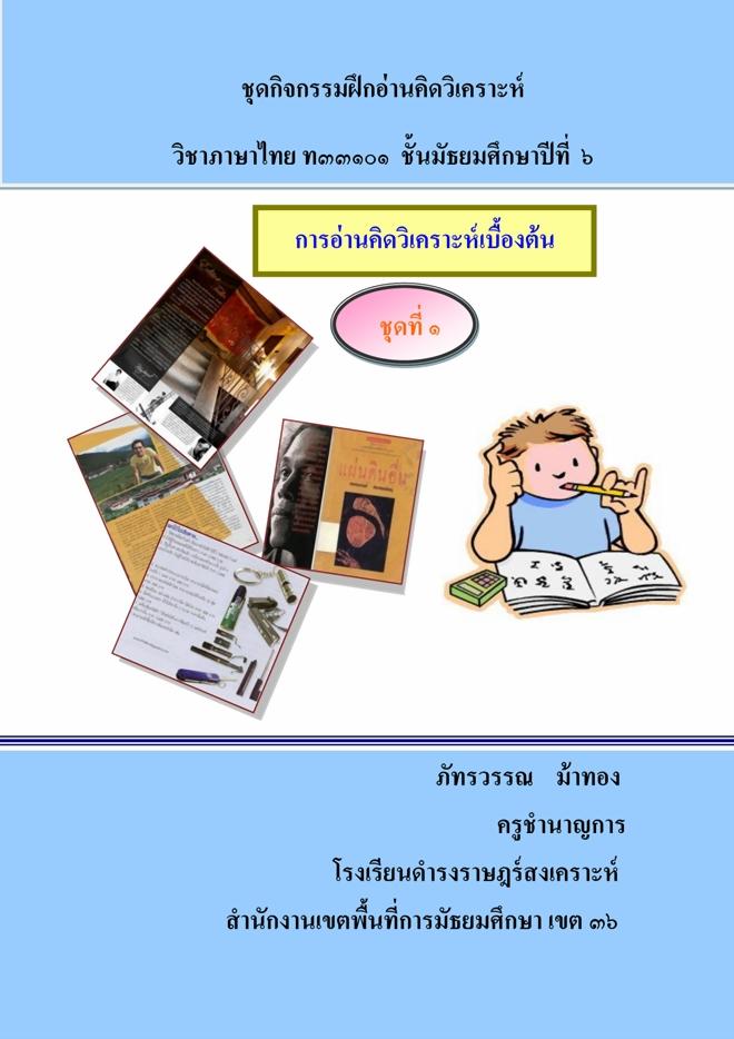 ชุดกิจกรรมฝึกการอ่านคิดวิเคราะห์ วิชาภาษาไทย ชั้น ม.6 ผลงานครูภัทรวรรณ ม้าทอง