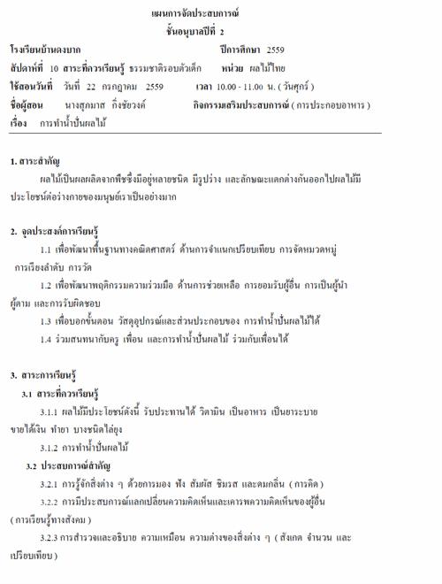 รายงานผลการจัดกิจกรรมการประกอบอาหารเพื่อพัฒนาความพร้อมพื้นฐานทางคณิตศาสตร์ ชั้นอนุบาลปีที่ 2 ผลงานครูสุภมาส กิ่งชัยวงค์