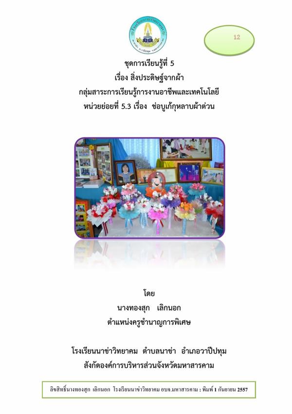 ชุดการเรียนรู้ เรื่อง สิ่งประดิษฐ์จากผ้า ผลงานครูทองสุก เลิกนอก