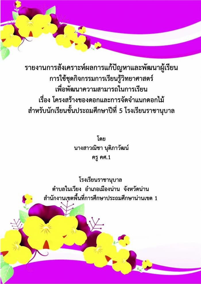 รายงานการสังเคราะห์ผลการแก้ปัญหาและพัฒนาผู้เรียน การใช้ชุดกิจกรรมการเรียนรู้วิทยาศาสตร์ เพื่อพัฒนาความสามารถในการเรียน : ณิชา นุติภาวัฒน์