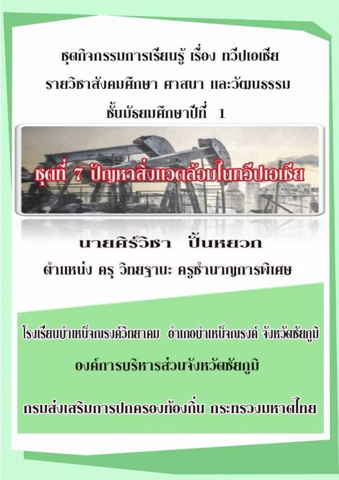 ชุดกิจกรรมการเรียนรู้แบบสืบเสาะหาความรู้เรื่องทวีปเอเชีย ชุดที่ 7 ปัญหาสิ่งแวดล้อมในทวีปเอเชีย ผลงานครูศิร์วิชา ปั้นหยวก