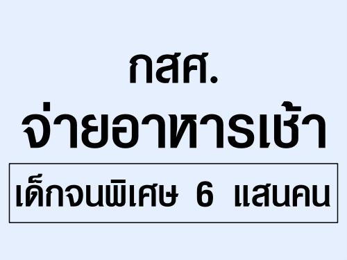 กสศ.จ่ายอาหารเช้าเด็กจนพิเศษ 6 แสนคน