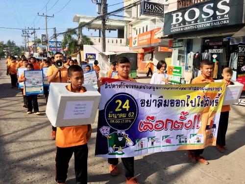 นร.ร.ร.ชุมชนบ้านศาลาด่าน เดินรณรงค์เลือกตั้ง